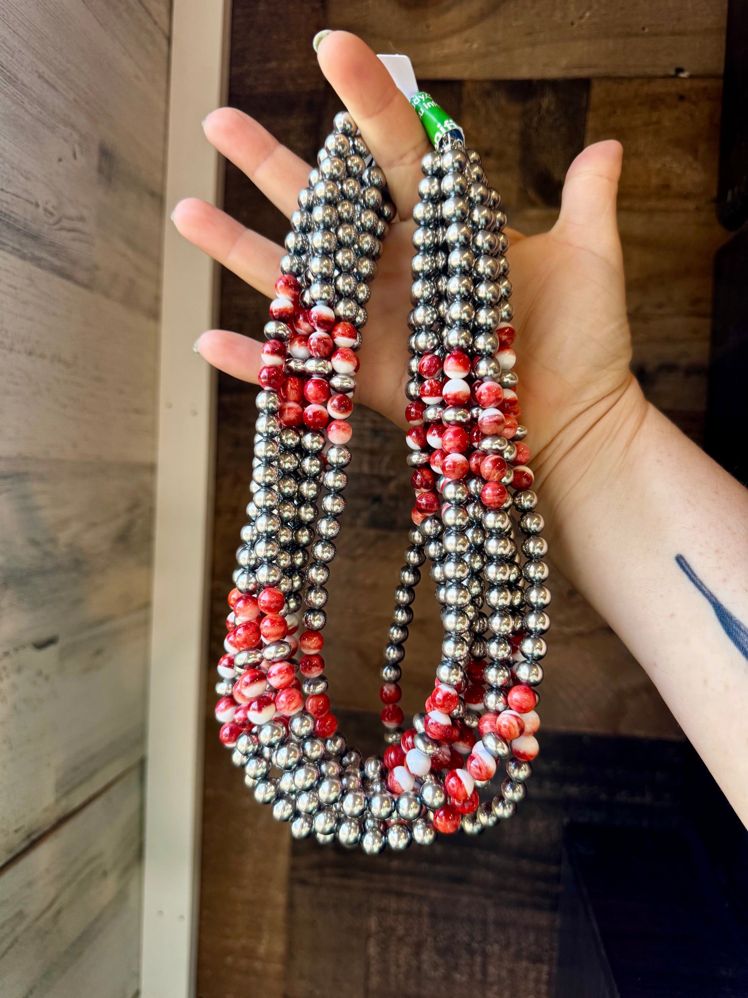 19 inch 8 mm Sterling Silver Pearls necklace with Red Spiny