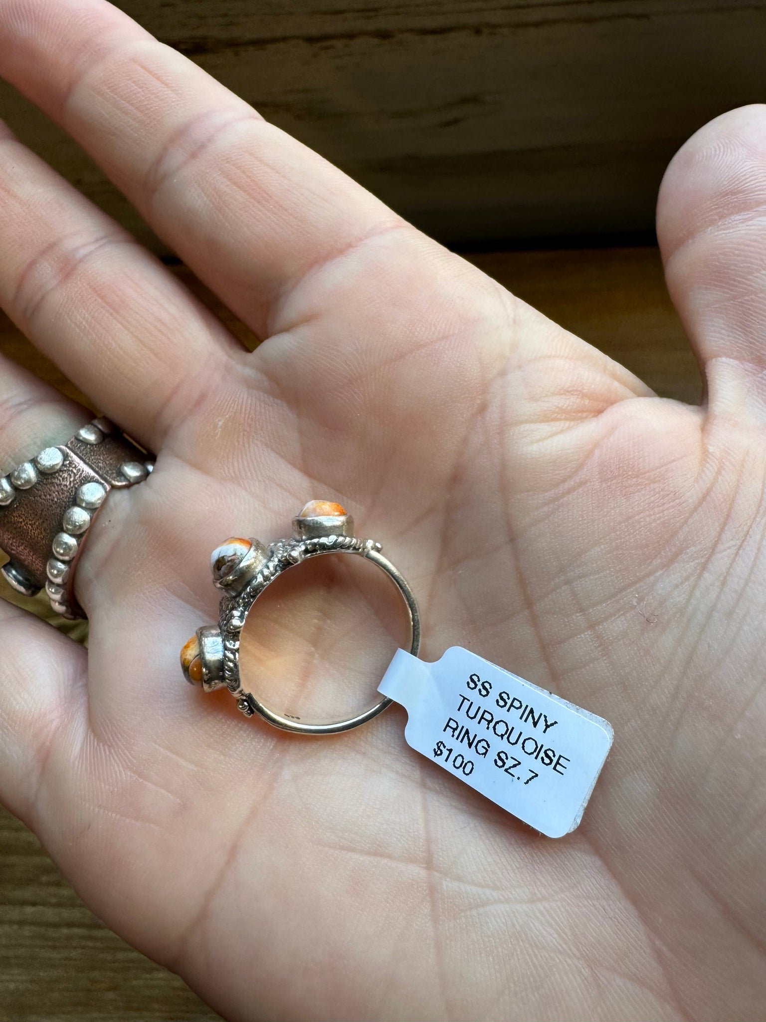 Band Ring - Size 7- spiny, Turquoise & sterling silver