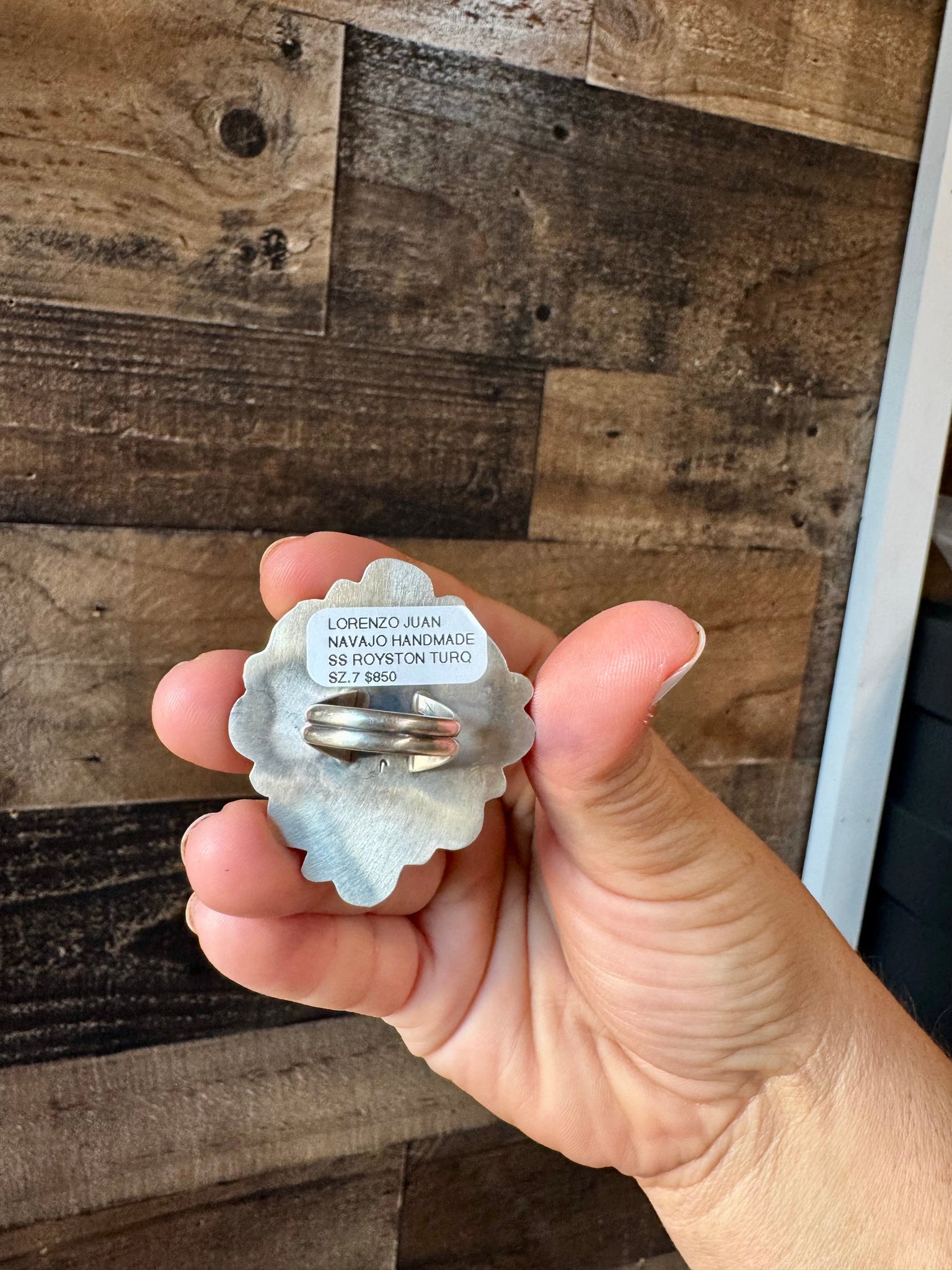 Big flower ring- size 7 1/2- Royston  turquoise ring and sterling silver