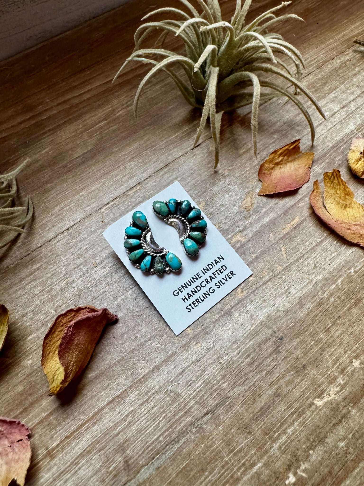 Half Cluster Earrings – Turquoise & Sterling Silver