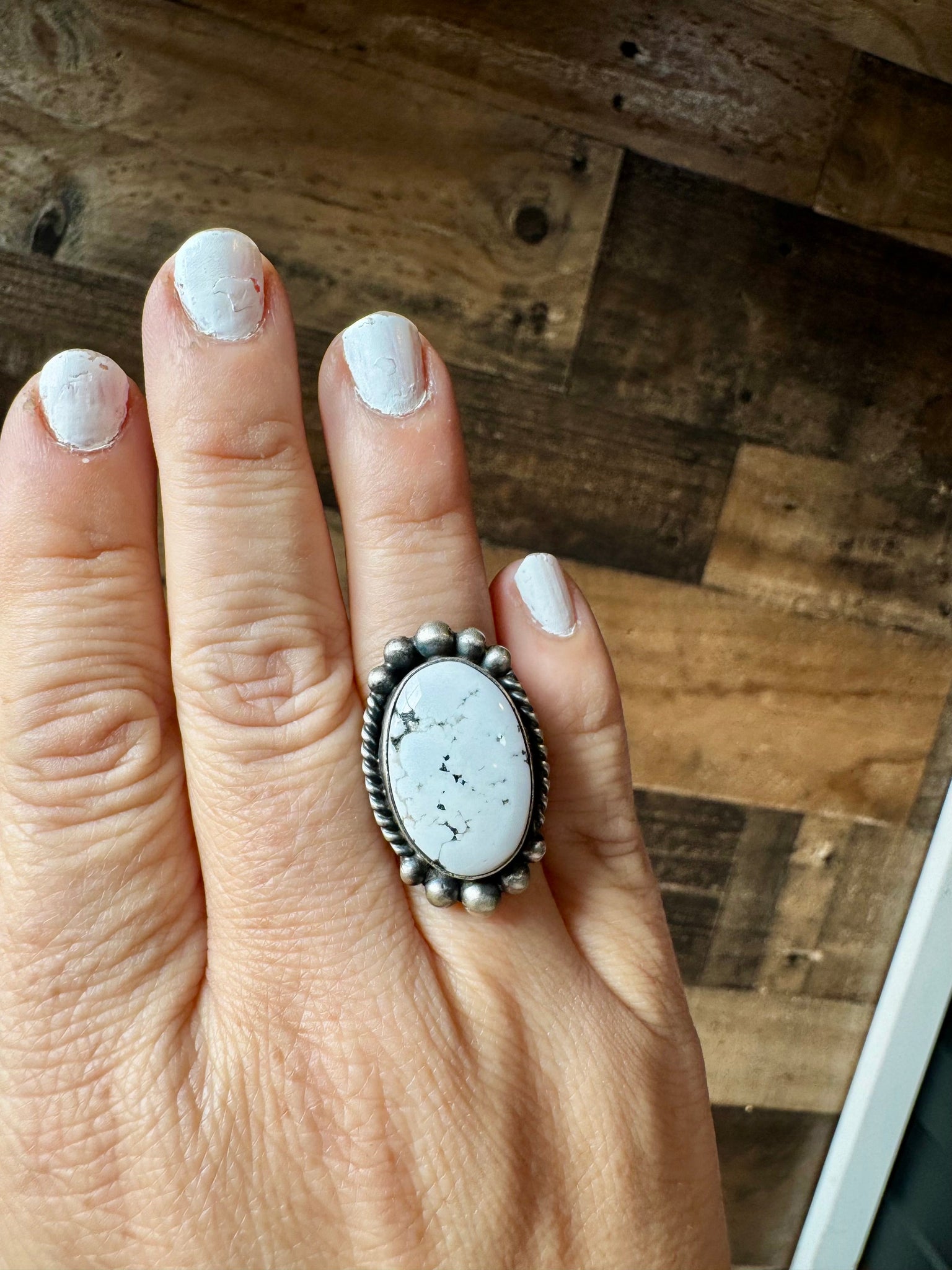 Oval ring - Adjustable- White Buffalo Ring & sterling silver