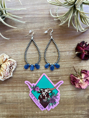 Kyanite teardrop earrings and Sterling Silver Pearls 3 mm