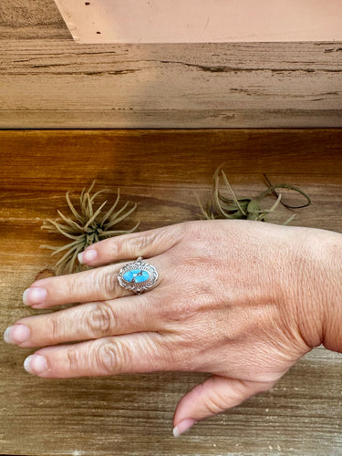 Golden Hills Turquoise Ring – Navajo Handmade by Virgil Chee, Size 9