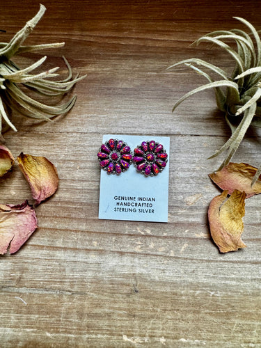 Cluster Earrings – Dark Pink Opal & Sterling Silver