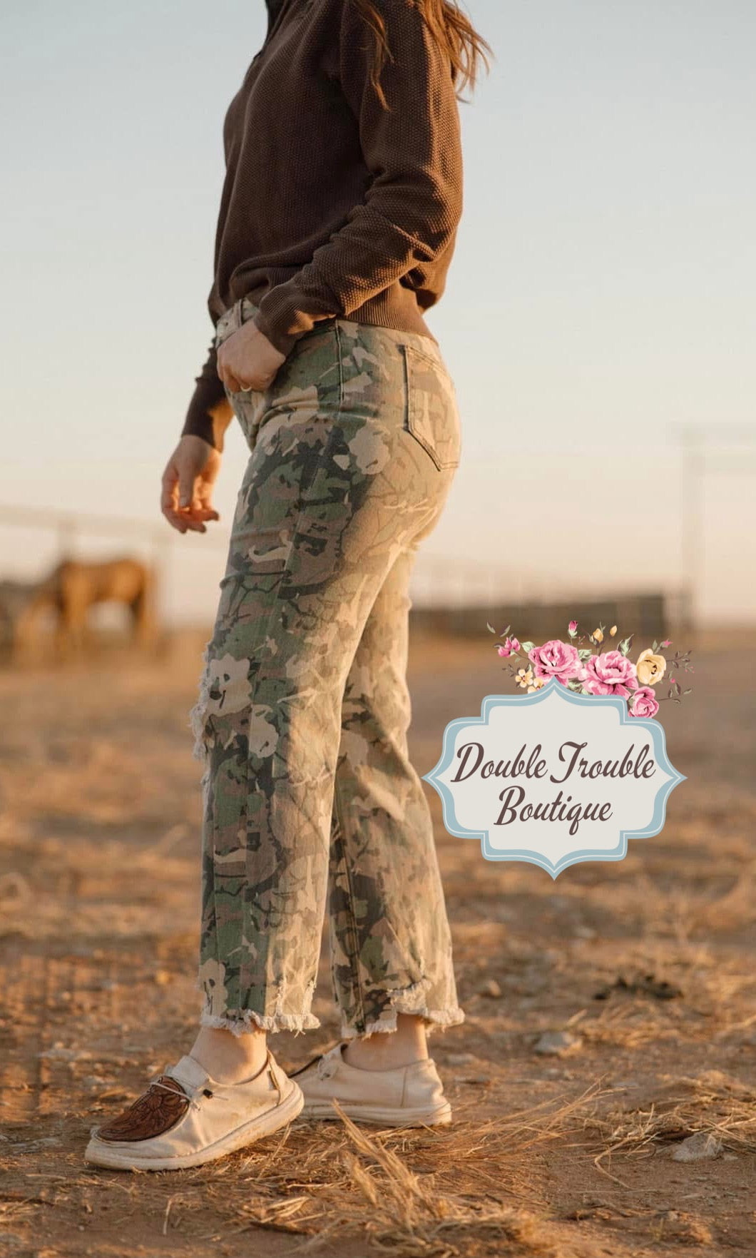 The Camo Kreek Jeans bring a wild twist to your wardrobe with their Camo print and edgy distressed holes at the knees. The raw hem hits right at the ankle, perfect for showing off your favorite shoes while keeping things effortlessly cool and playful.